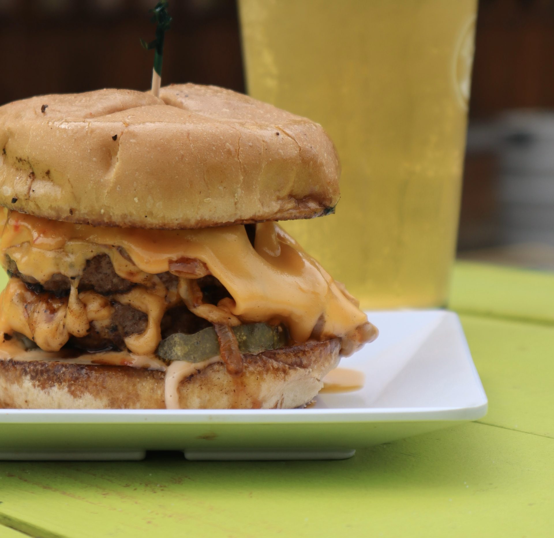 $8 "The American Melt Down" - Our angus patty split in two with 1000 island dressing, American cheese, pickle & grilled onion