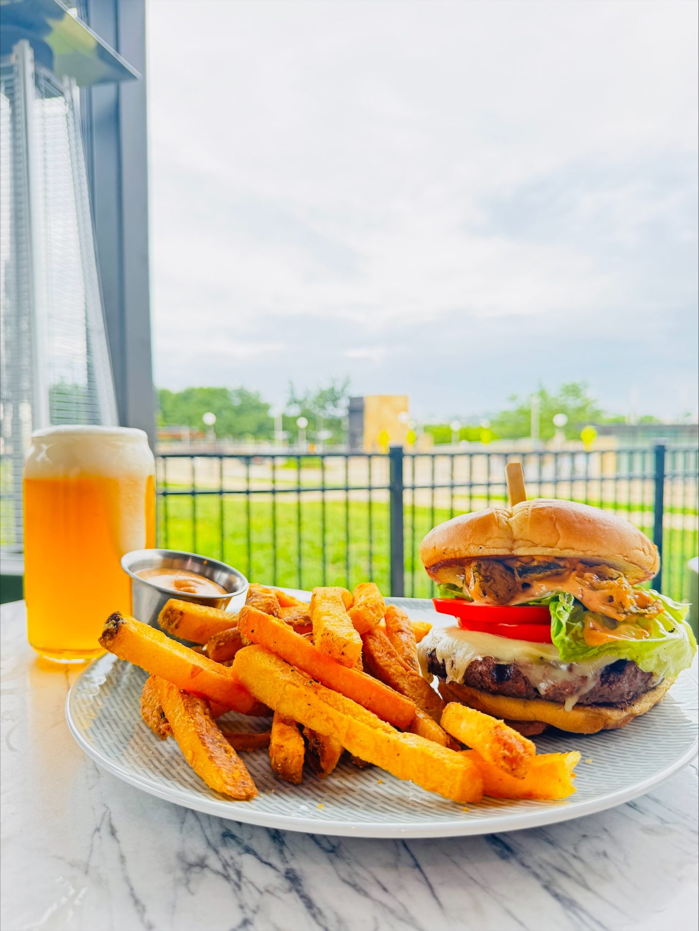 $8 Cincy Reds Hot Burger: Chargrilled burger topped with fried jalepenos, pepper jack cheese and siracha aoli